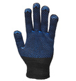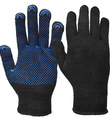 Трикотажные перчатки универсального применения (3х-нитка) чёрного цвета с машинным обметыванием кромки манжеты (Х-нить). Изготавливаются из х/б пряжи с добавлением 30% синтетических волокон ПЭ. Дискретное ПВХ-покрытие ладонной части «Точка» обеспечивает плотный контакт руки работающего с предметом труда. Изделия классифицируются как средства индивидуальной защиты рук от механических воздействий (истирания) и общих производственных загрязнений. Произведены в соответствии с требованиями ТР ТС 019/2011.
