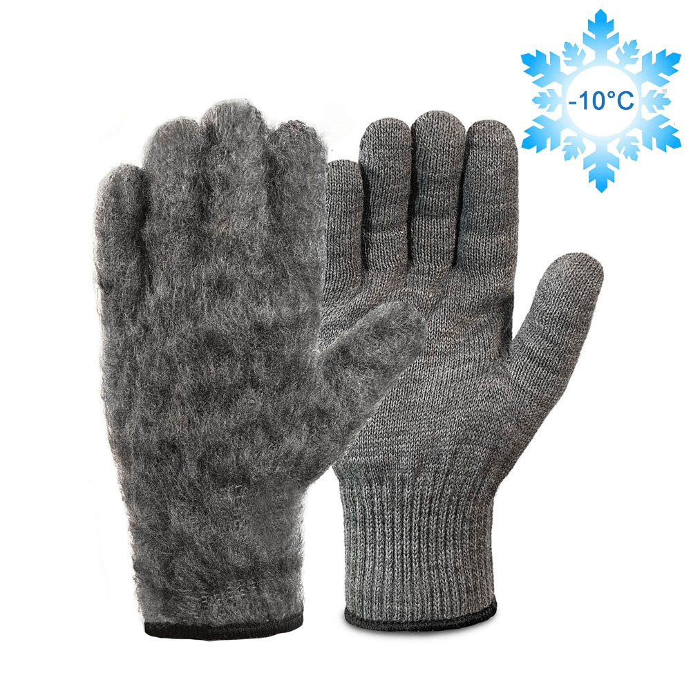 Одинарные шерстяные перчатки 70% шерсть + 30% акрил. Теплые вязаные перчатки с внутренним начесом и двойным оверлоком. Класс вязки 10. Защищают руки от пониженной температуры. Предназначены для комфортного выполнения работ на открытом воздухе, зимой или в межсезонье, при отрицательных температурах в Ⅰ или Ⅱ климатических поясах. Перчатки могут применяться для строительных, ремонтных, монтажных, погрузочно-разгрузочных и прочих видах работ. Упакованы в мешки по 200 пар.
