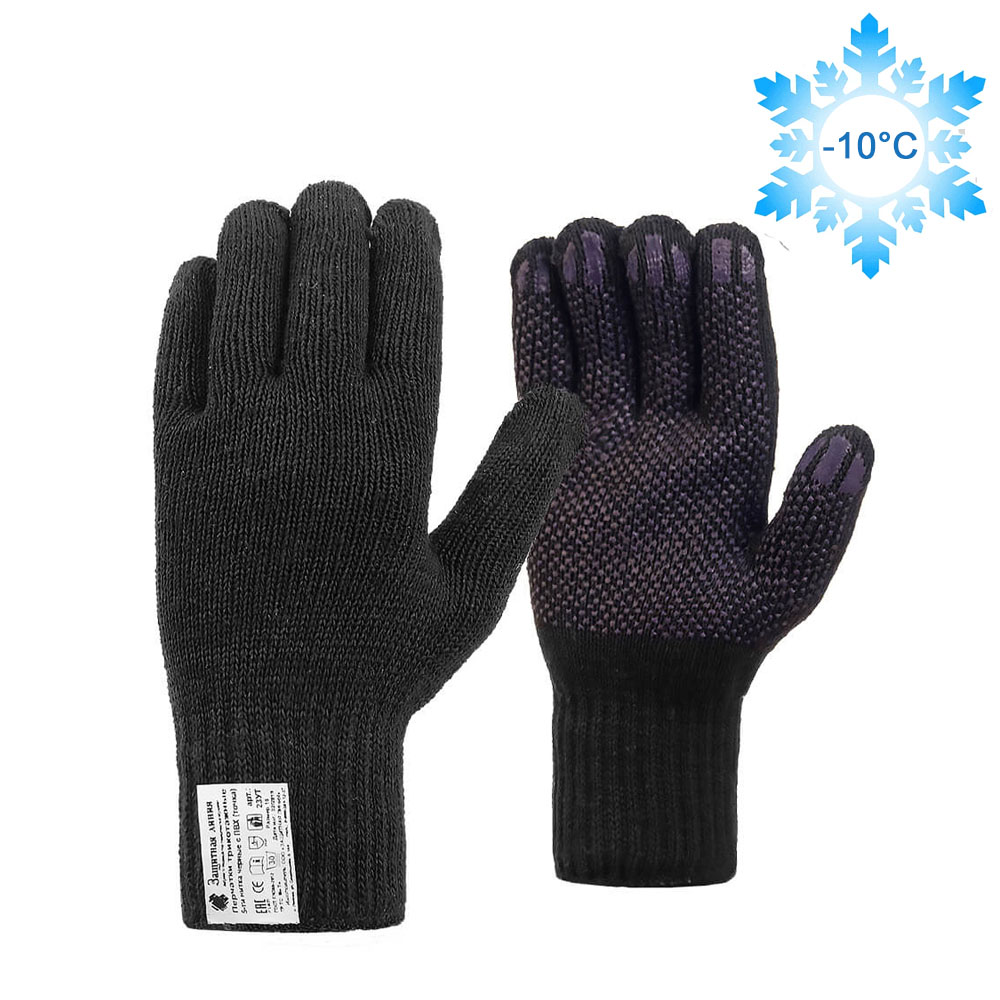 Двойные хлопчатобумажные перчатки (70% ХБ + 30% полиэфир) с ПВХ «Точка», 7.5 класс, по ГОСТу с маркировкой, черные