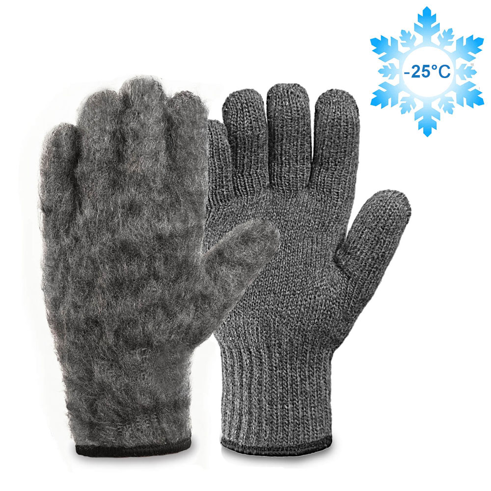 Двойные шерстяные перчатки с внутренним начёсом (70% шерсть + 30% акрил), по ГОСТу с маркировкой, серые, до -25°С