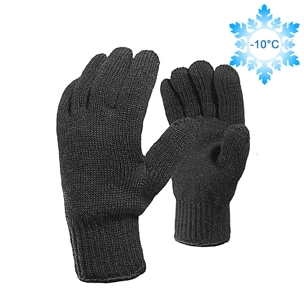 Двойные полушерстяные перчатки (30% шерсть + 70% акрил), 7.5 класс, черные