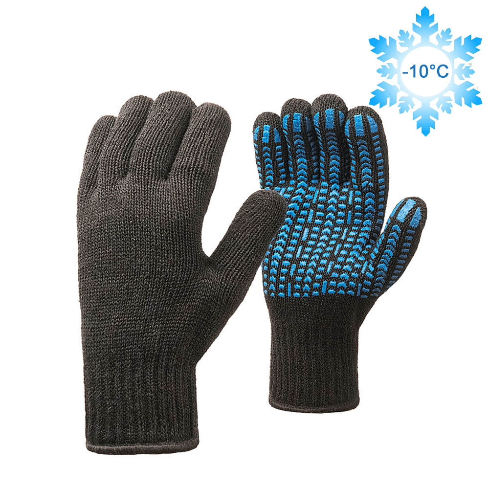 Перчатки полушерстяные двухслойные 7,5 класс вязки, черного цвета с двойным оверлоком. ПВХ рисунок "Протектор" обеспечивает надежный захват. Перчатки предназначены для выполнения работ не связанных с большими механическими нагрузками на открытом воздухе при отрицательных температурах. Климатический пояс: Ⅰ, Ⅱ. Упакованы в мешки по 100 пар.